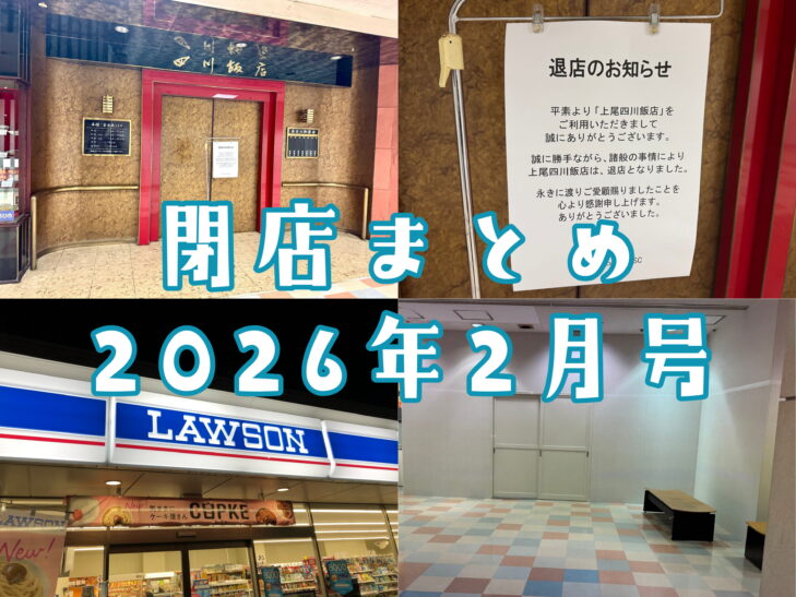 この記事では2026年2月頃に上尾市周辺で閉店した(する)お店をまとめて紹介しています。