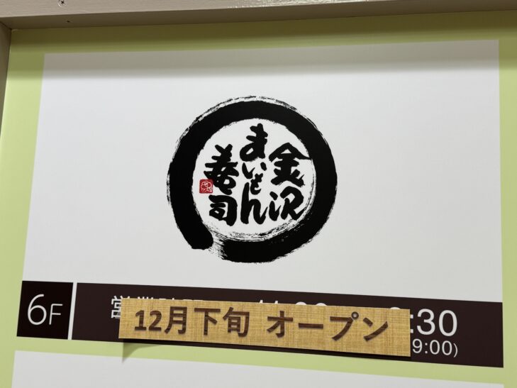 金沢まいもん寿司がまるひろ上尾SC6階に12月下旬オープン予定!
