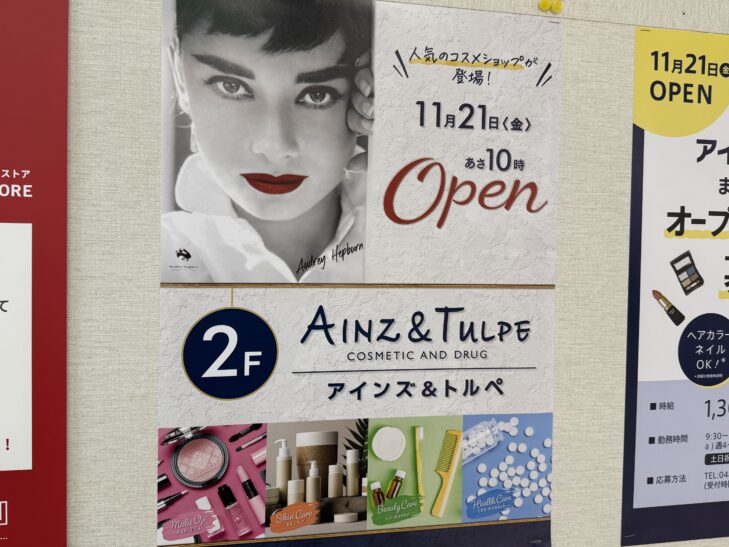 ドラッグストアのアインズ&トルペ まるひろ上尾SC店が2階に11月21日(金)オープン予定!