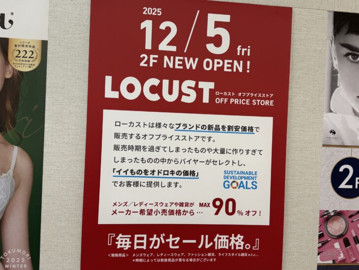 オフプライスストアのLOCUSTがまるひろ上尾SC2階に12月5日(金)オープン予定!