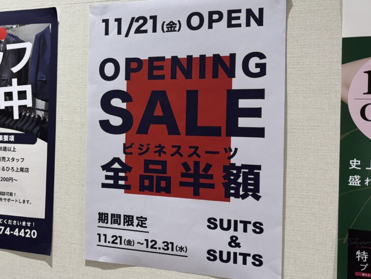 SUITS&SUITS まるひろ上尾店が11月21日(金)オープン予定!